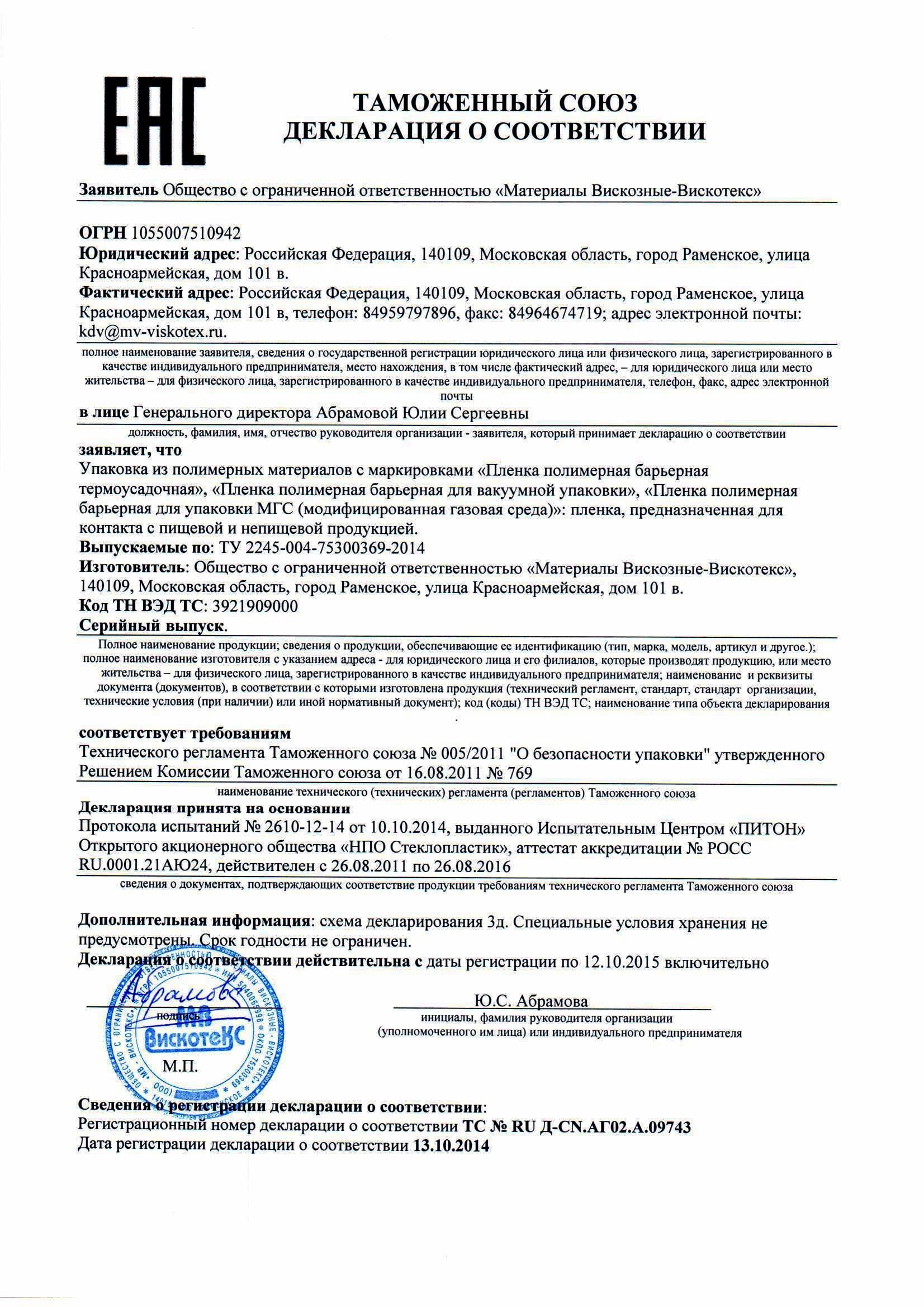 Именно так оформляется декларация соответствия пищевых продуктов.